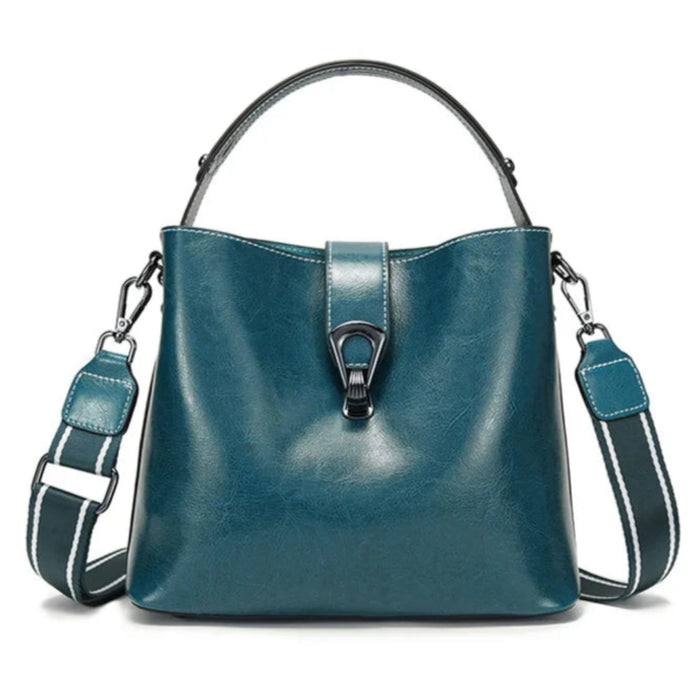 This elegant bucket bag is crafted from high-quality cowhide leather, offering a luxurious feel with a durable and soft texture. Designed for versatility, it functions as both a shoulder and crossbody bag, making it perfect for daily use, travel, or casual outings. With a spacious interior and multiple compartments, it provides ample storage while maintaining a stylish, minimalist look.