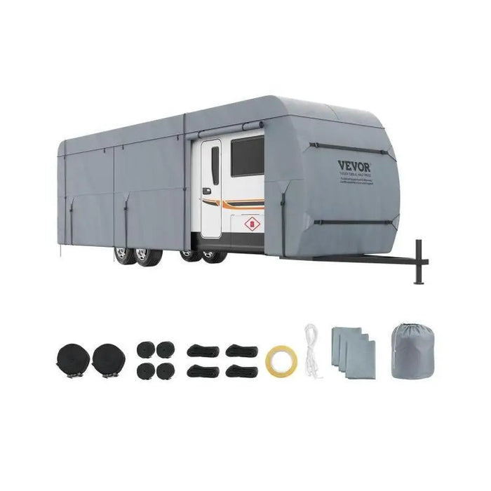 Ensure the longevity of your travel trailer with this premium 4-layer waterproof cover, perfectly designed for RVs between 8.5 and 9.1 meters (28-30 feet). Constructed from sturdy non-woven fabric, this cover provides comprehensive protection against all weather conditions, including rain, wind, and UV damage. The breathable material prevents moisture buildup, while the UV-resistant layers shield your RV from harsh sunlight and fading.