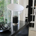 This model is a small size (H50cm × D37cm) and features a black lampshade with chrome accents. Ideal for decor-focused ambient lighting.