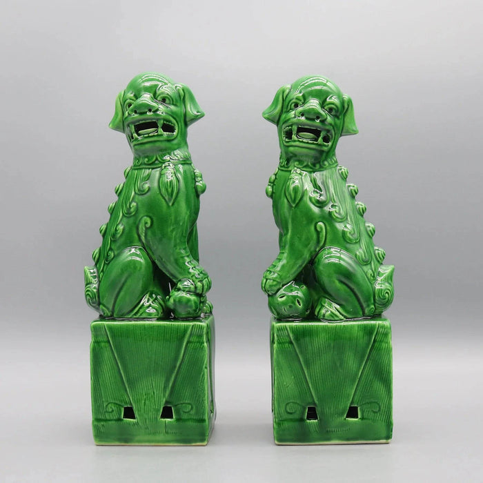 Invite tranquility and protection into your living space with this exquisite pair of Foo Dogs Ceramic Guardian Lions. These grass green sculptures exude elegance and are designed to infuse your home with positive energy and harmony.