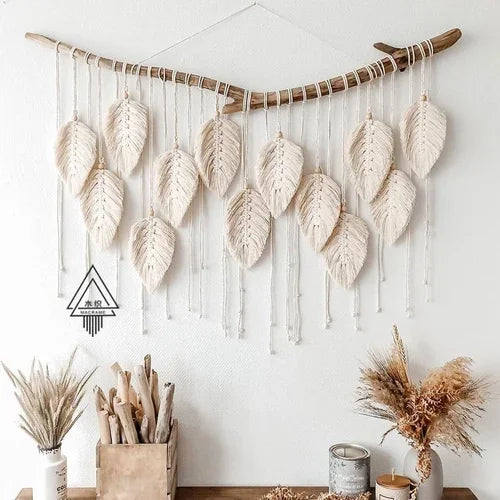 View full detailsBring calming nature vibes into your space with this beautifully woven leaf tapestry. Crafted in a simple Nordic style, this elegant wall hanging f...