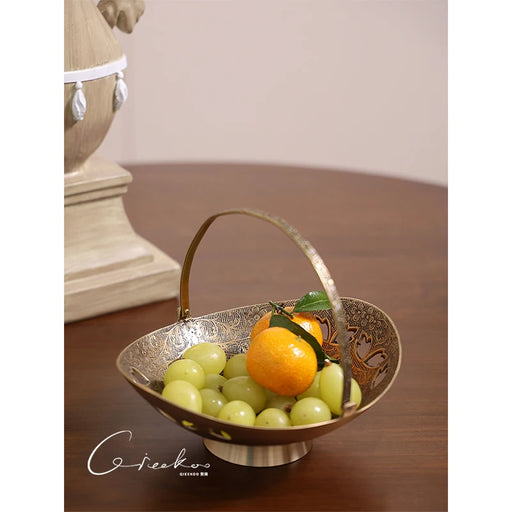 View full detailsBring elegance and function together with this uniquely handcrafted brass storage basket. Designed with a retro aesthetic, this durable metal organ...