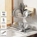 Keep your kitchen organized with this sleek, durable dish drying rack. Ideal for small kitchens, it efficiently dries dishes, utensils, and other kitchenware while preventing water from dripping onto your countertop. With a smart, space-saving design, this dish rack offers a practical solution to store bowls, plates, glasses, pots, and pans. Featuring a built-in drainboard with a spout for easy water drainage, this multifunctional rack ensures your kitchen stays dry and organized. The rack’s coating prevents rusting, ensuring long-lasting durability.