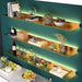 Enhance your home with this stylish golden floating wall shelf, perfect for organizing your kitchen, bathroom, or living room. Designed with practicality in mind, this modern shelf is made from durable iron, ensuring both strength and stability. Its sleek design features an LED backlight, adding a warm glow to any space. The versatile size (100x20x6 cm) makes it suitable for storing kitchen items, displaying plants, or adding decorative pieces to your room. Easy to install with a bolt-inserting method, it’s a perfect addition to your home for both functionality and aesthetics.