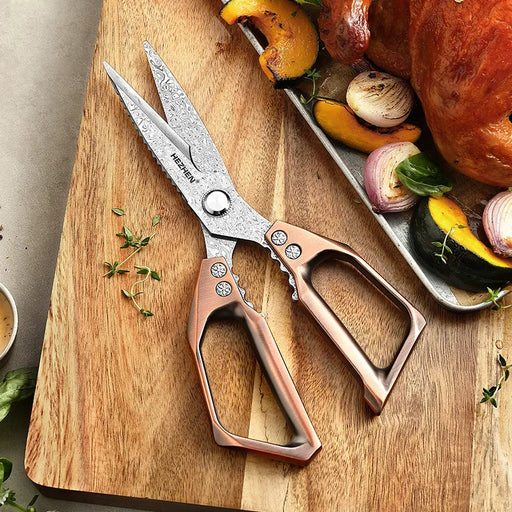 View full detailsUpgrade your kitchen essentials with these premium Damascus Steel Kitchen Scissors—crafted for cutting through tough meats, poultry, and even small...