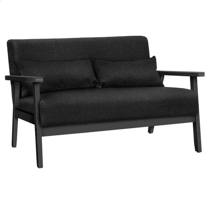The 2 seater sofa with wooden armrests is a stylish and comfy choice for your living space, combining modern aesthetics with optimal comfort. This elegant sofa is perfect for any room, offering a welcoming spot to unwind.