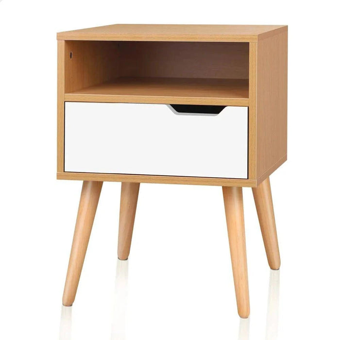 Elevate your bedroom's style and functionality with the Scandinavian Bedside Table Nightstand. This wooden bedside cabinet boasts a sophisticated design, merging Scandinavian elegance with practical storage solutions. Choose from various styles to match your personal needs—whether you prefer a single drawer, two drawers, or an open shelf.