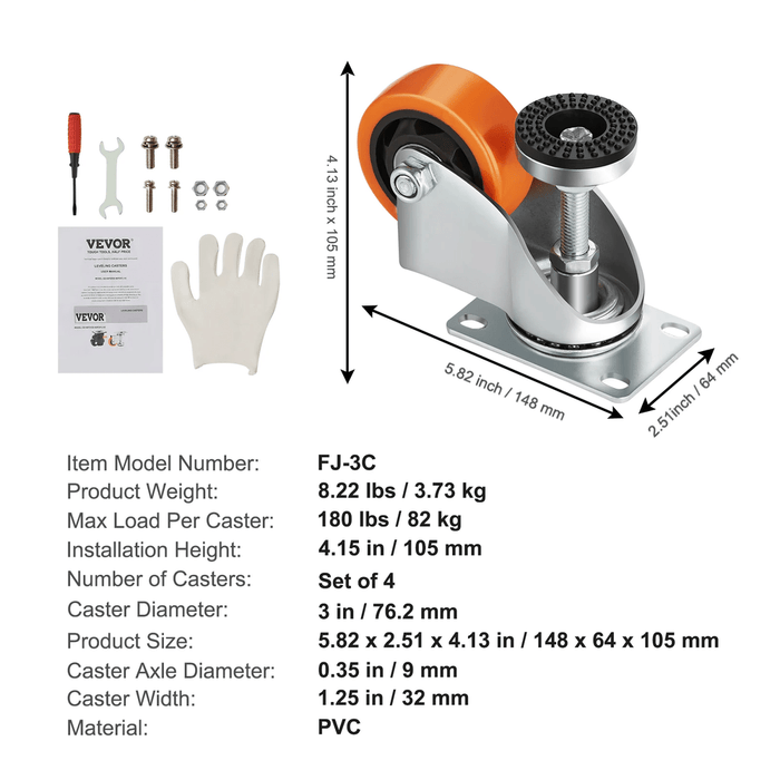 - Adjustable Height: Each caster features an easy-twist handle for precise height adjustments, ensuring a level setup and consistent positioning.
