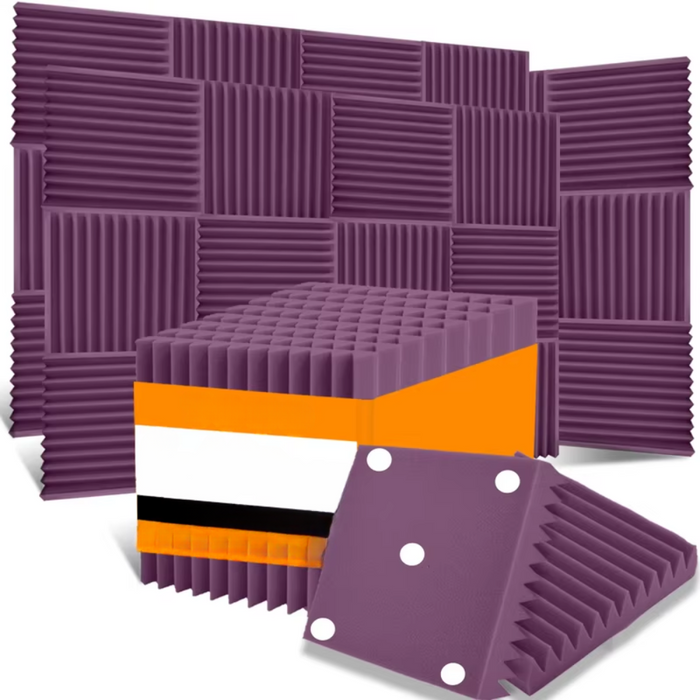 Achieve optimal sound control with this purple acoustic foam panel set, designed for noise reduction and improved acoustics. The triangular groove design effectively absorbs sound waves, reducing echo and background noise in recording studios, podcast rooms, and home theaters. The medium-density polyurethane material is durable and easy to install, with double-sided tape included for hassle-free setup.