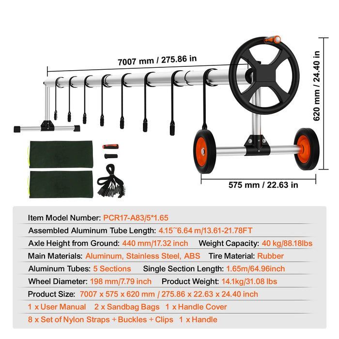 This pool cover reel set is the perfect addition to any pool owner’s setup, offering durability, ease of use, and stability. With the included sandbags, you'll have confidence in its stability while saving time and effort on pool maintenance.